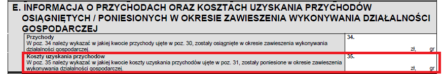 C = 1+2+3 1) PIT/B – wartość przychodów osiągniętych w okresie zawieszenia wykazanych na PIT/B poz. 34 |