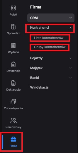 W zakładce Firma ➡ Kontrahenci dostępne są następujące podzakładki dotyczące kontrahentów: