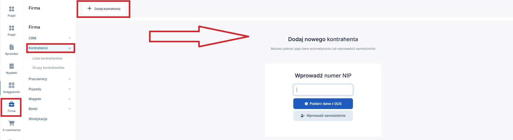 a) funkcja dodawania nowego kontrahenta (+ Dodaj kontrahenta)
