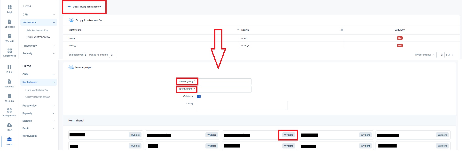 Lista kontrahentów, grupy kontrahentów oraz ich dodawanie
