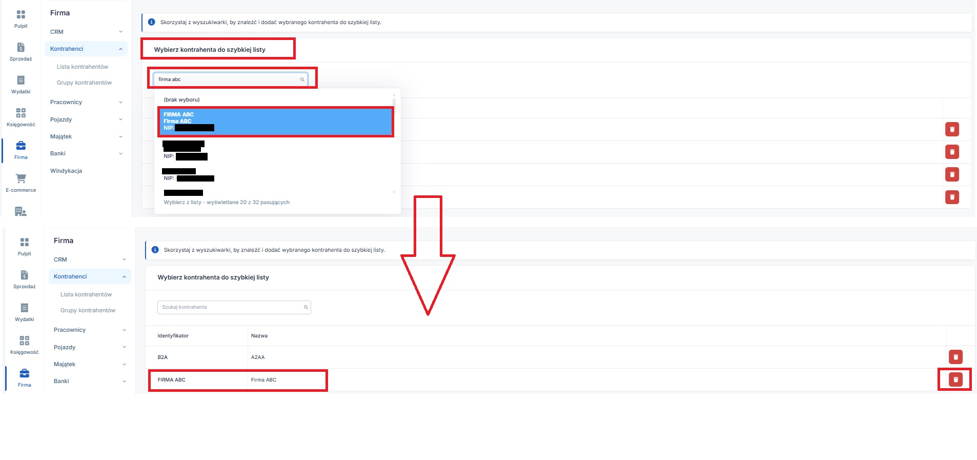 W przypadku kiedy lista zawiera już maksymalną ilość pozycji pole do wyszukania kontrahenta nie jest dostępne. Pojawi się po usunięciu, któregoś z już dodanych kontrahentów.