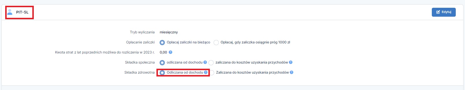 W takiej sytuacji nieistotne jest, czy składka zdrowotna przedsiębiorcy rozliczona jest jako koszt w Księdzę Przychód i Rozchodów czy też odliczona od dochodu, serwis nie weźmie pod uwagę dodatkowej składki zdrowotnej składki zdrowotnej.