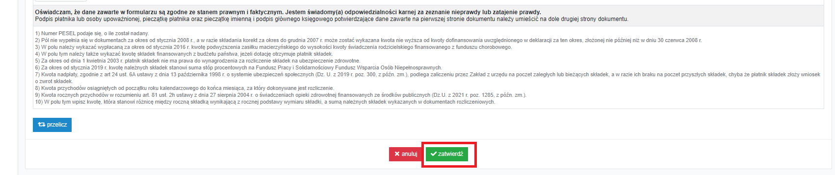 Po wybraniu opcji zatwierdź deklaracja zostanie przekazana do podpisu dla pracowników serwisu.