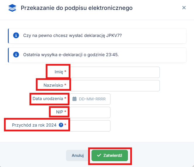 Drugą możliwością wysyłki deklaracji za pomocą serwisu jest przekazanie deklaracji do podpisu przez naszego pracownika.