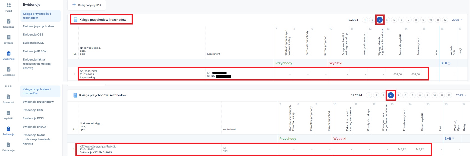 W przypadku Użytkowników zwolnionych z VAT jedyną ewidencją, w której ujmowany jest wydatek zaksięgowany przez formularz importu usług jest Księga Przychodów i Rozchodów (zapisu w tej ewidencji nie będzie w przypadku Użytkowników rozliczających się ryczałtem od przychodów ewidencjonowanych).