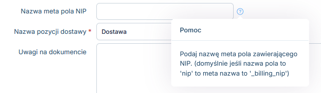 Jeśli posiadasz dedykowane pole do podania NIP, w ustawieniach faktur należy podać jego meta nazwę, aby prawidłowo przesyłać numer NIP do IFIRMA.