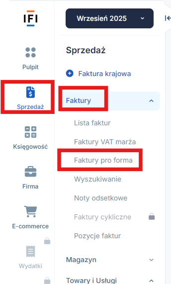 Takich faktur nie można wystawić w serwisie. Polecamy skorzystanie z faktur pro forma w zakładce Sprzedaż ➡ Faktury ➡ Faktury pro forma zamiast faktur sprzedaży wystawianych z góry.