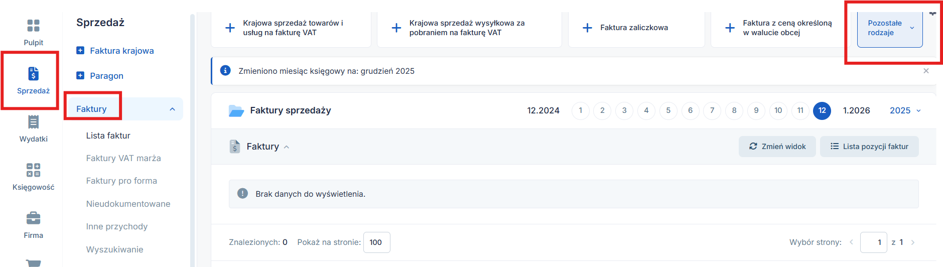 Jeśli zaliczka nie obejmowała całej wartości zamówienia, to na pozostałą część należałoby wystawić fakturę. Można to zrobić w zakładce: