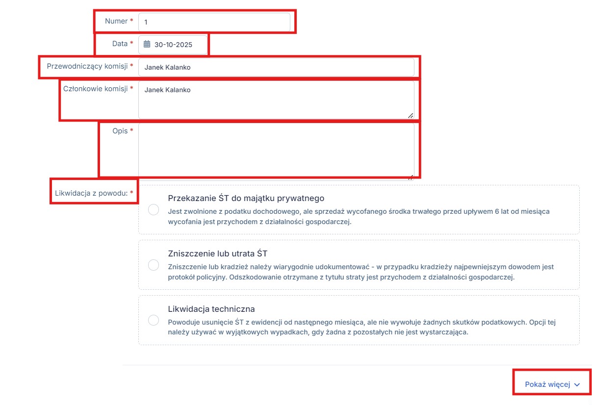 Należy uzupełnić protokół likwidacji o takie informacje jak: