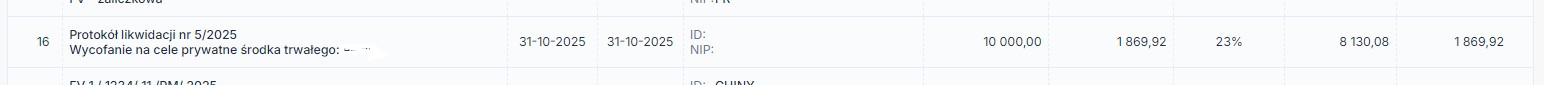 Likwidacja środka trwałego z działalności może mieć różne powody. Jednym z nich może być Wycofanie do majątku prywatnego.