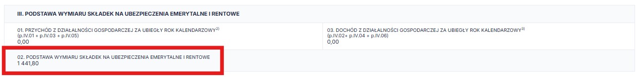 Określony załącznik będzie wówczas zawierać informację na temat przychodu, dochodu z działalności gospodarczej za ubiegły rok kalendarzowy oraz podstawę wymiaru składek na ubezpieczenie emerytalne i rentowe za rok 2026.