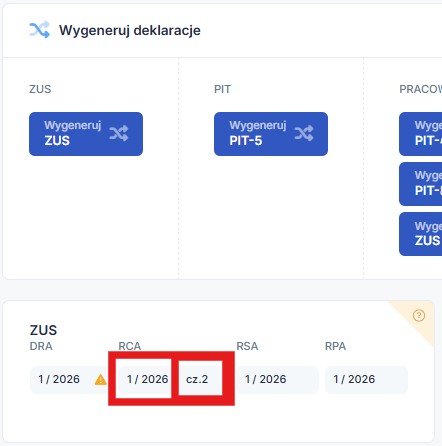 Natomiast w momencie, kiedy przedsiębiorca zatrudnia pracowników, a jego składki pojawiają się na deklaracji ZUS RCA, wówczas zostanie utworzona deklaracji RCA cz. 2.