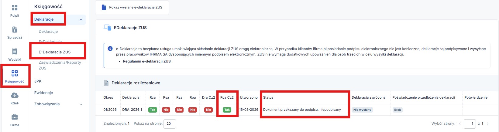 Deklaracje zostaną przesłane do ZUS w ramach opcji e-deklaracji w serwisie ifirma.pl.
