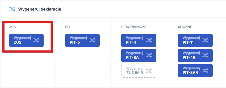 Następnie należy wybrać opcję wygeneruj ZUS, co rozpocznie proces generowania deklaracji w systemie.