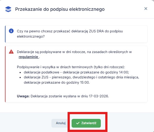 Pojawi się dodatkowa prośba o zatwierdzenie, aby zapewnić świadome wysłanie deklaracji elektronicznie, niwelując w ten sposób pomyłki.