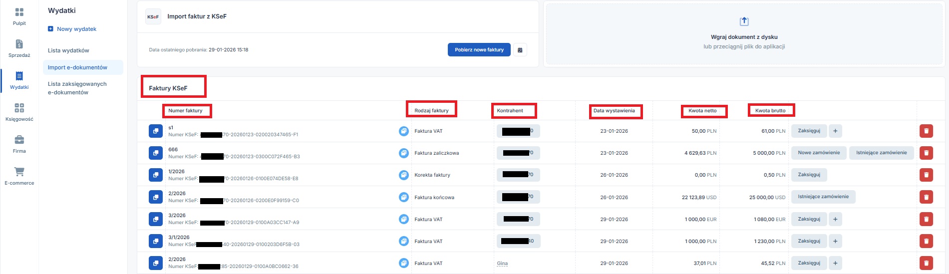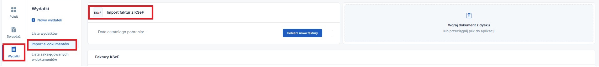 a także z poziomu zakładki Wydatki ➡ Import e-dokumentów.