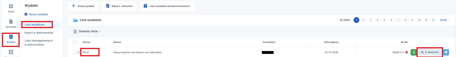 • w zakładce Wydatki ➡ Lista zaksięgowanych e-dokumentów