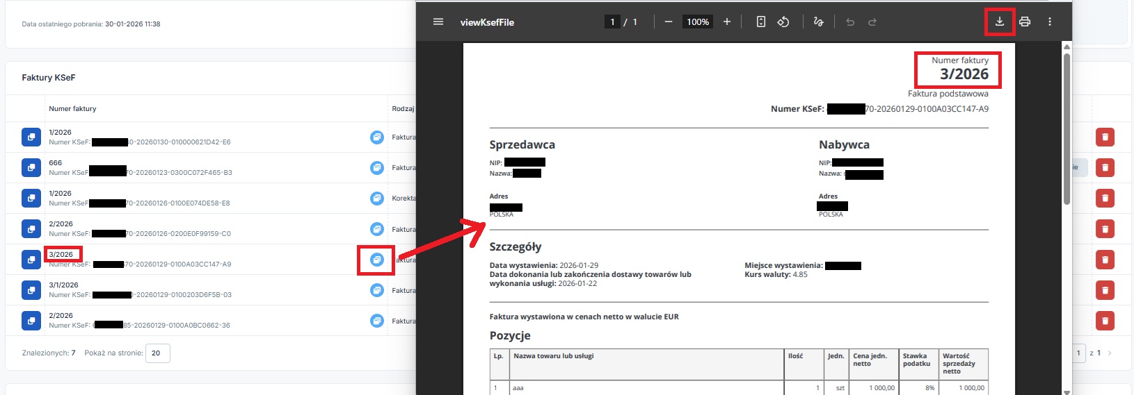 Pobrane dokumenty widoczne będą na liście Faktury z KSeF.