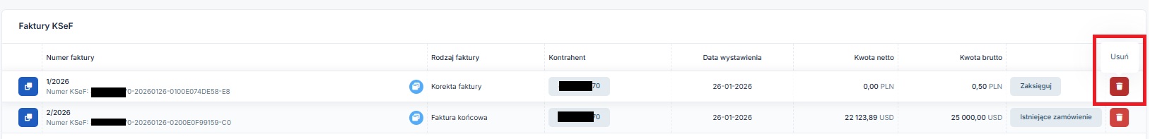 Usunięte z listy faktury nie będą ponownie pobrane jeśli podczas import dokumentów nie zostanie wskazany okres obejmujący ich wystawienie (datę ich wystawiania wskazaną na dokumencie przez sprzedawcę).