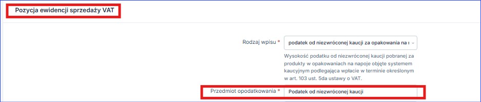 • przypisanie wartości kaucji do właściwych stawek VAT.