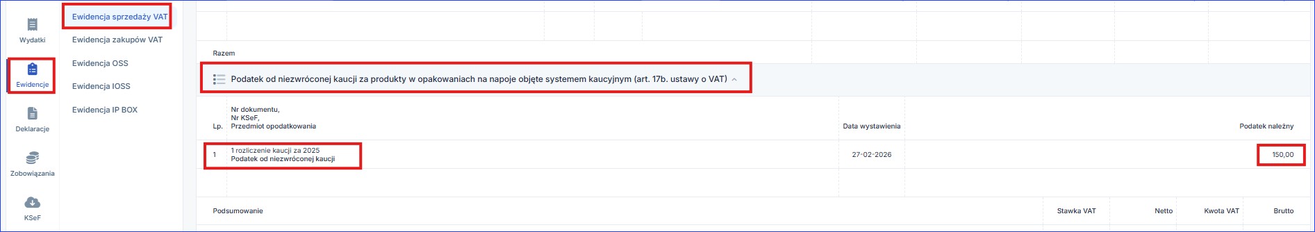 wartość wpłaconego podatku od kaucji pomniejszy podatek VAT do zapłaty za luty 2026.