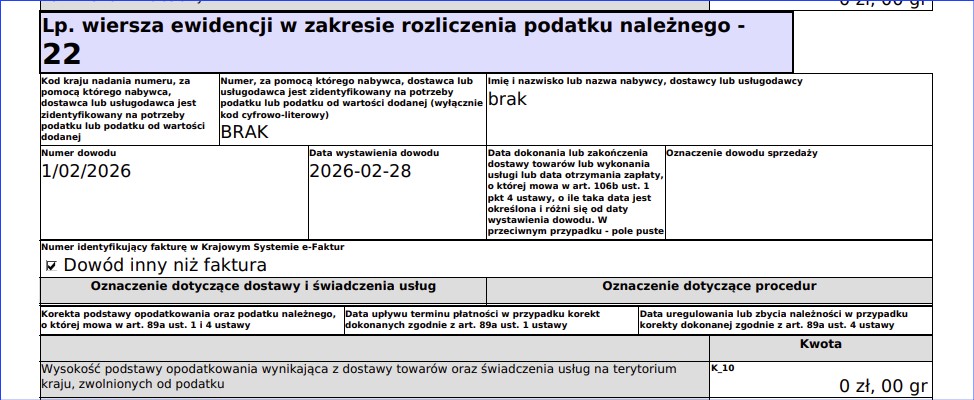 Zapis będzie widoczny w Ewidencji sprzedaży VAT w zakładce Księgowość ➡ Ewidencje ➡ Ewidencja sprzedaży VAT.