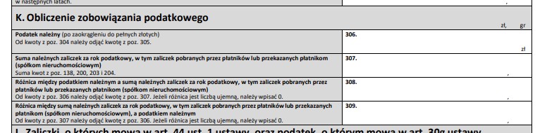 3) W części K dokonuje się obliczenia zobowiązania podatkowego za 2025 r.