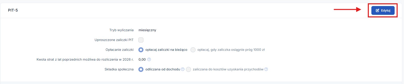 Następnie w części PIT-5/5L przejść do edycji: