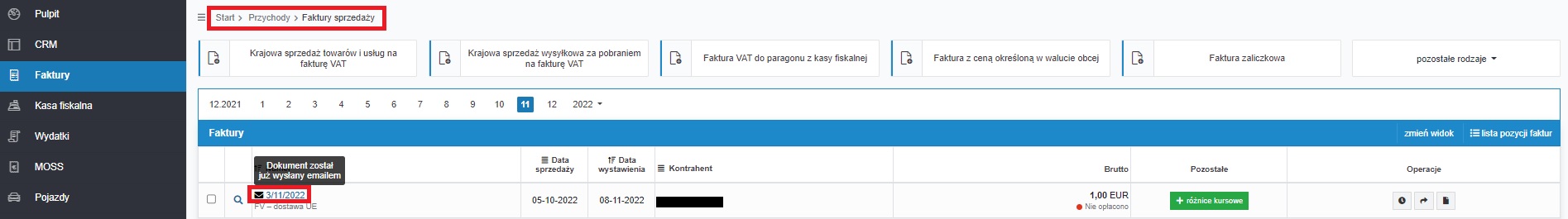 Wystawiona faktura widoczna będzie w zakładce Sprzedaż ➡ Faktury ➡ Lista faktur w miesiącu lipcu.
