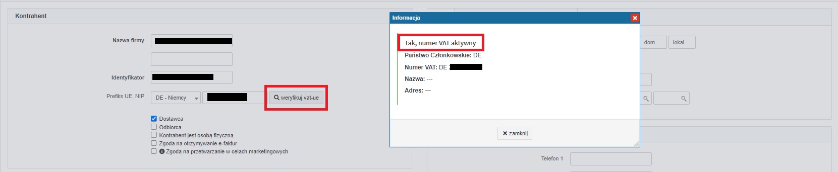 1. Dostawa została dokonana na rzecz nabywcy posiadającego właściwy i ważny numer dla transakcji wewnątrzwspólnotowych, który został przekazany sprzedawcy,