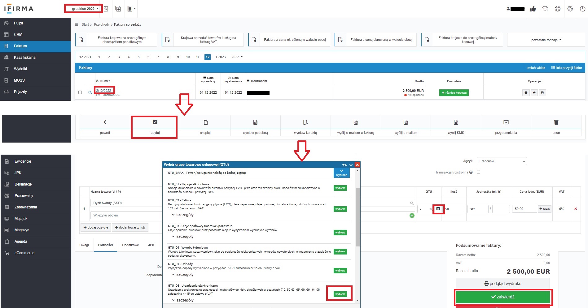 2. wprowadza fakturę korygującą do ewidencji podatkowych (ewidencji przychodów oraz ewidencji sprzedaży VAT)