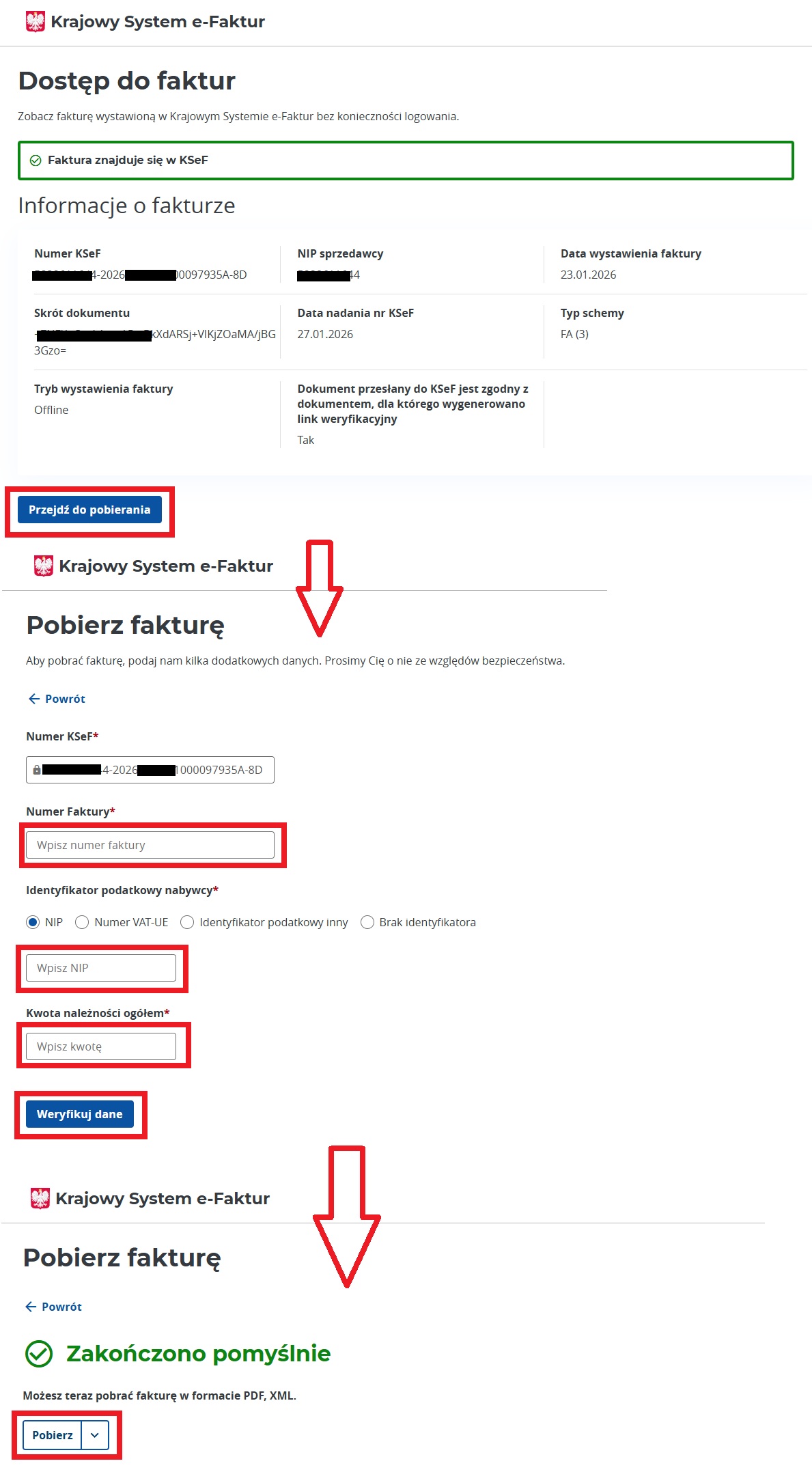Należy zauważyć, iż nabywca nie ma obowiązku pobierania faktury za pomocą powyższej opcji, w sytuacji kiedy otrzymał od sprzedawcy dokument w formie pdf.