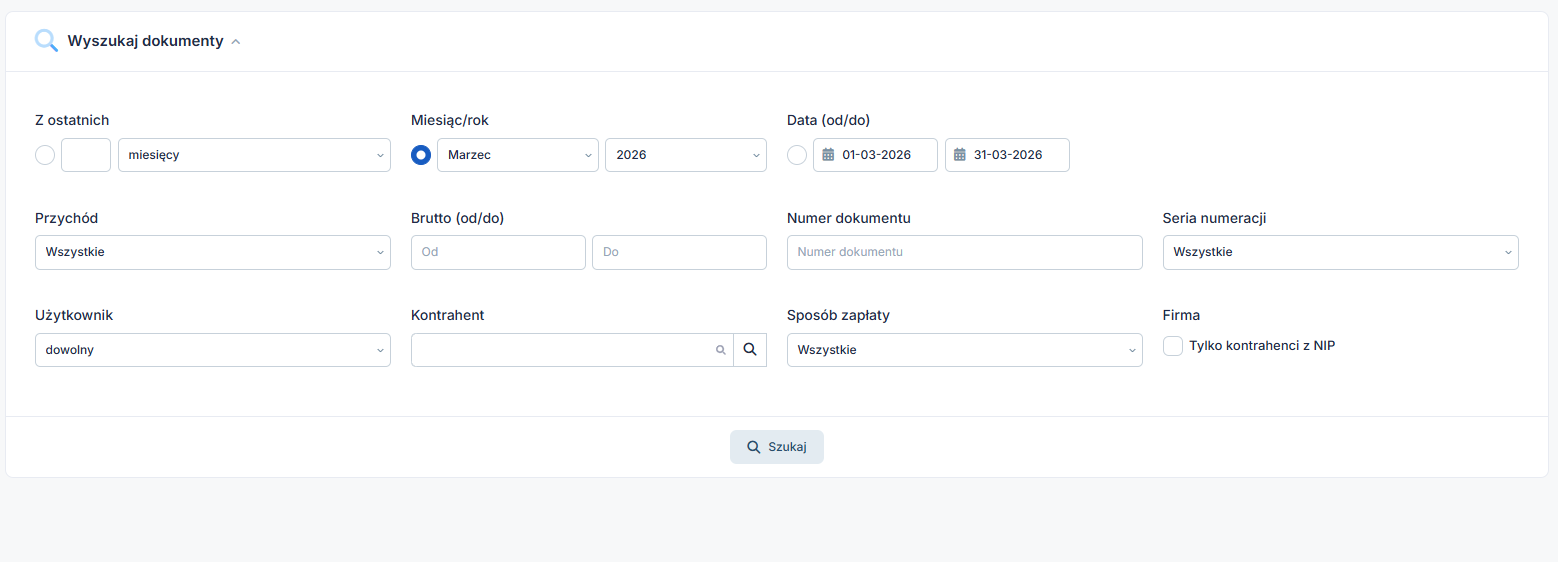 Dla płatników VAT funkcja dostępna jest w zakładce Sprzedaż ➡ Faktury ➡ Wyszukiwanie.