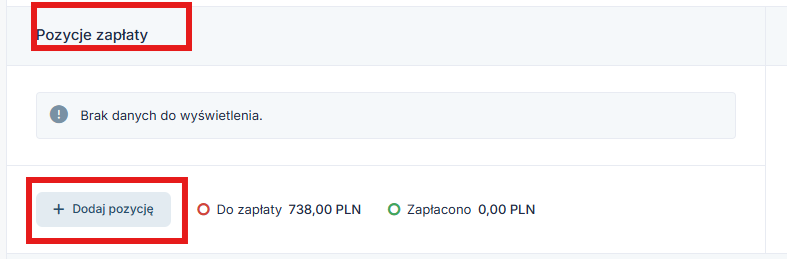 Innym sposobem jest wybranie numeru dokumentu zakupu w zakładce Wydatki ➡ Lista wydatków, następnie na dole w części Pozycje zapłaty wybieramy +Dodaj pozycję.