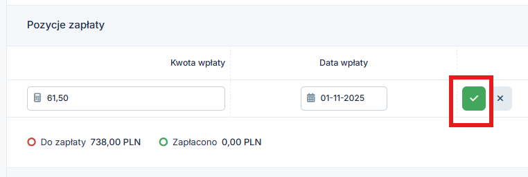 Następnie należy wprowadzić datę i kwotę zapłaconej raty oraz ją zatwierdzić.