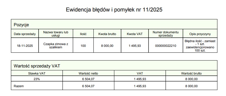 | Ewidencja zwrotów i uznanych reklamacji | Ewidencja oczywistych pomyłek |
